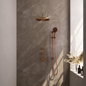Inbouw Regendouche Set Brauer Copper Edition Gebogen Wanduitloop Ronde Hoofddouche 30 cm Met Twee Stopkranen Glijstang en Handdouche 3 Standen Koper