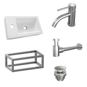 Fonteinset Brauer Brushed Edition 40x22cm Wit Incl. Toebehoren en Frame Geborsteld RVS PVD