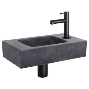 Fonteinset Differnz Bombai Natuursteen en Handoekrek 40x22x9 cm Zwart Met Gebogen Kraan Mat Chroom