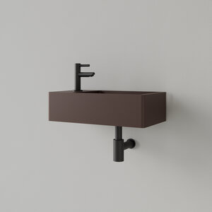 Fontein Gliss Design Freya Solid Marble 40x22x10 cm Met Kraangat Links Mat Choco Bruin