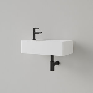Fontein Gliss Design Freya Solid Marble 40x22x10 cm Met Kraangat Rechts Mat Zwart