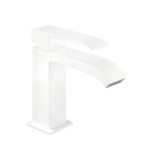 Wastafelmengkraan Tres Cuadro 1-Hendel Uitloop Gebogen Hoog 24 cm met Waterval Vierkant Mat Wit
