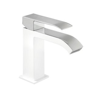 Wastafelmengkraan Tres Cuadro Exclusive 1-Hendel Uitloop Gebogen 16 cm met Waterval Vierkant Chroom Wit