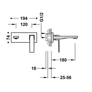 Wastafelmengkraan Inbouw Tres Slim Exclusive Rechte Lange Uitloop en Hendel Mat Zwart