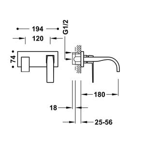 Wastafelmengkraan Inbouw Tres Slim Exclusive Gebogen Uitloop...