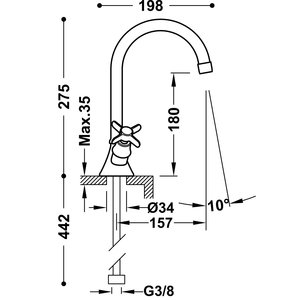 Bidetmengkraan Tres Project Hendel Uitloop Gebogen 16,5 cm R...