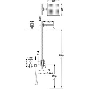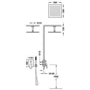 Regendoucheset Inbouw Tres Project Vierkant 30 cm Met Plafondarm en Handdoucheset met Staafhanddouche Rapid Box RVS