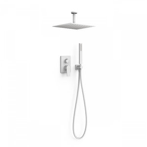 Regendoucheset Inbouw Tres Project Vierkant 30 cm Met Plafondarm en Handdoucheset met Staafhanddouche Rapid Box Mat Wit