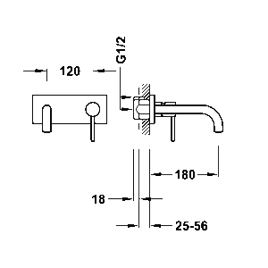 Wastafelmengkraan Inbouw Tres Study Exclusive met Afdekplaat Gebogen Uitloop 24 cm en Hendel Chroom