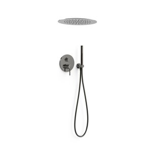 Regendoucheset Inbouw Tres Study Exclusive Rond 38 cm met Plafonddouche en Handdoucheset met Staafhanddouche Rapid Box Metallic Zwart