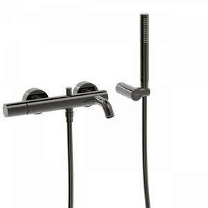 Badmengkraan Tres Study Exclusive Rond met Omstel en Handdoucheset met Staafhanddouche Metallic Zwart