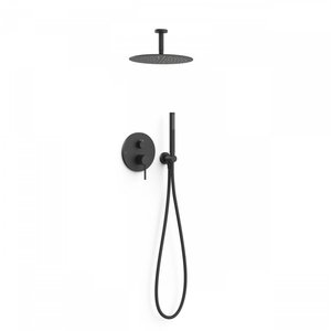 Regendoucheset Inbouw Tres Study Exclusive Rond 30 cm Met Plafondarm en Handdoucheset met Staafhanddouche en Rapid Box Mat Zwart