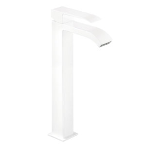 Wastafelmengkraan Tres Cuadro Exclusive 1-Hendel Uitloop Gebogen Hoog 32 cm met Waterval Vierkant Mat Wit