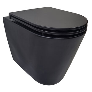 Vesta Rimless Wandcloset Wiesbaden Mat Zwart PK Met Vesta Toiletzitting Softclose En Quick Release Mat Zwart