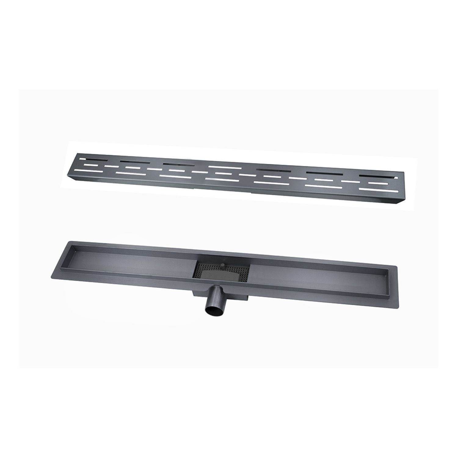 De douchegoot is voorzien van een stijlvol rooster met gunmetal afwerking. De douchegoot heeft een donkere uitvoering en maakt hierdoor het verschil in uw badkamer. Het rooster is 70x7x6.7 cm, echter ook verkrijgbaar in meerdere maten. Het voordeel van een douchegoot is dat u het sifon eruit kan halen om schoon te maken. Met het haarfilter kunt u de goot nog schoner houden en u voorkomt hiermee verstopping.