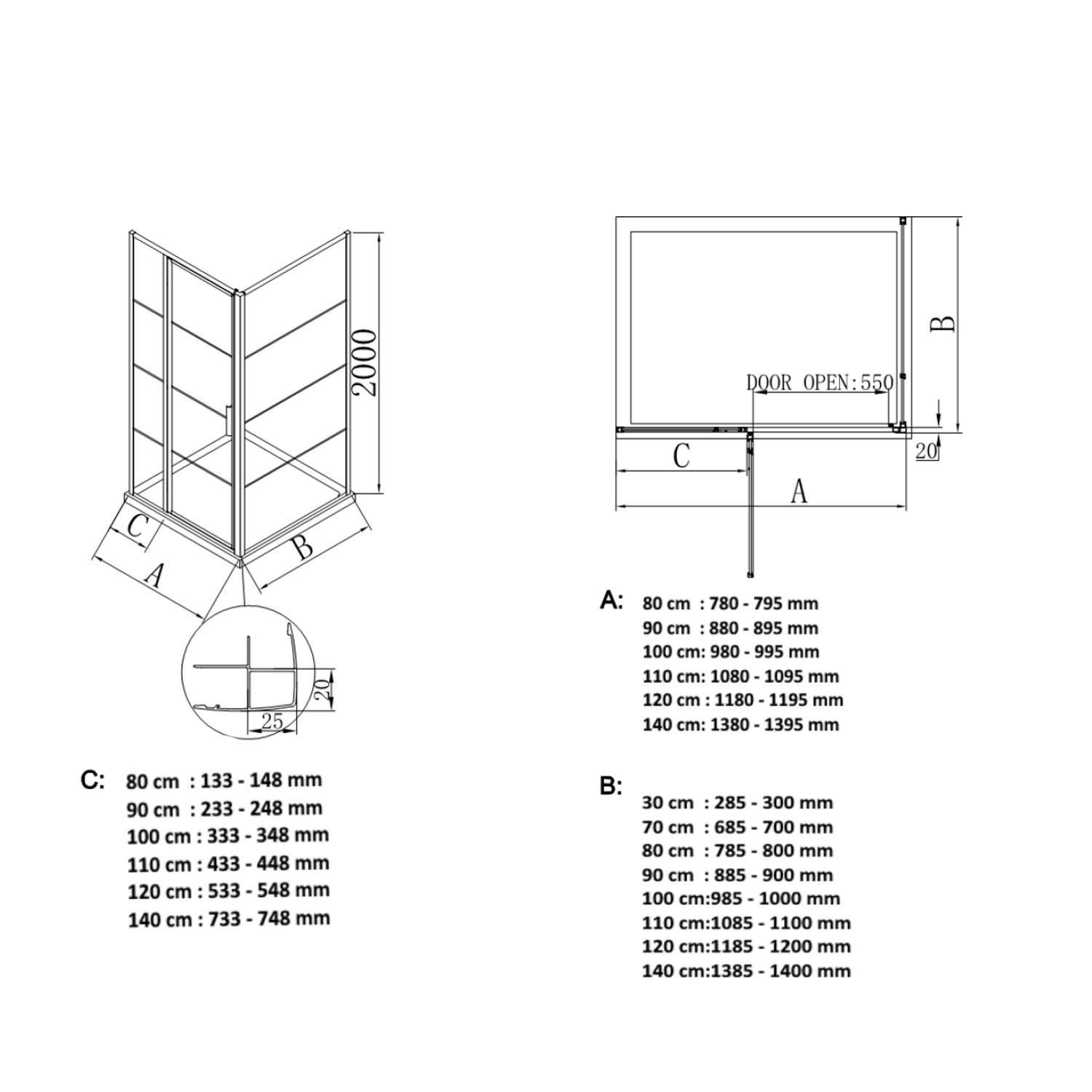Verder heeft de inloopdouche een glasdikte van 8 mm. Het glas van de wand is uitgerust met een Nano anti-kalk coating. Deze coating zorgt ervoor dat kalk- en zeepresten zich niet zullen hechten aan het glas. Bovendien geeft dit een glanzende uitstraling aan de inloopdouche. Let op: bij het schoonmaken van het glas mogen er geen bijtende schoonmaakmiddelen gebruikt worden!