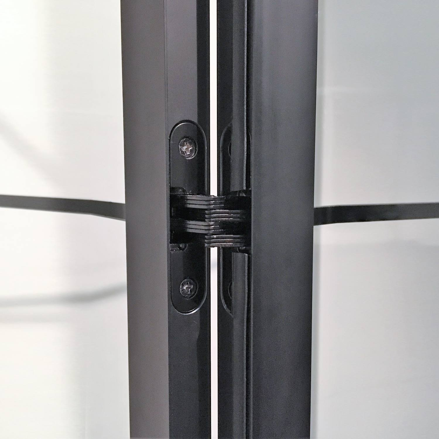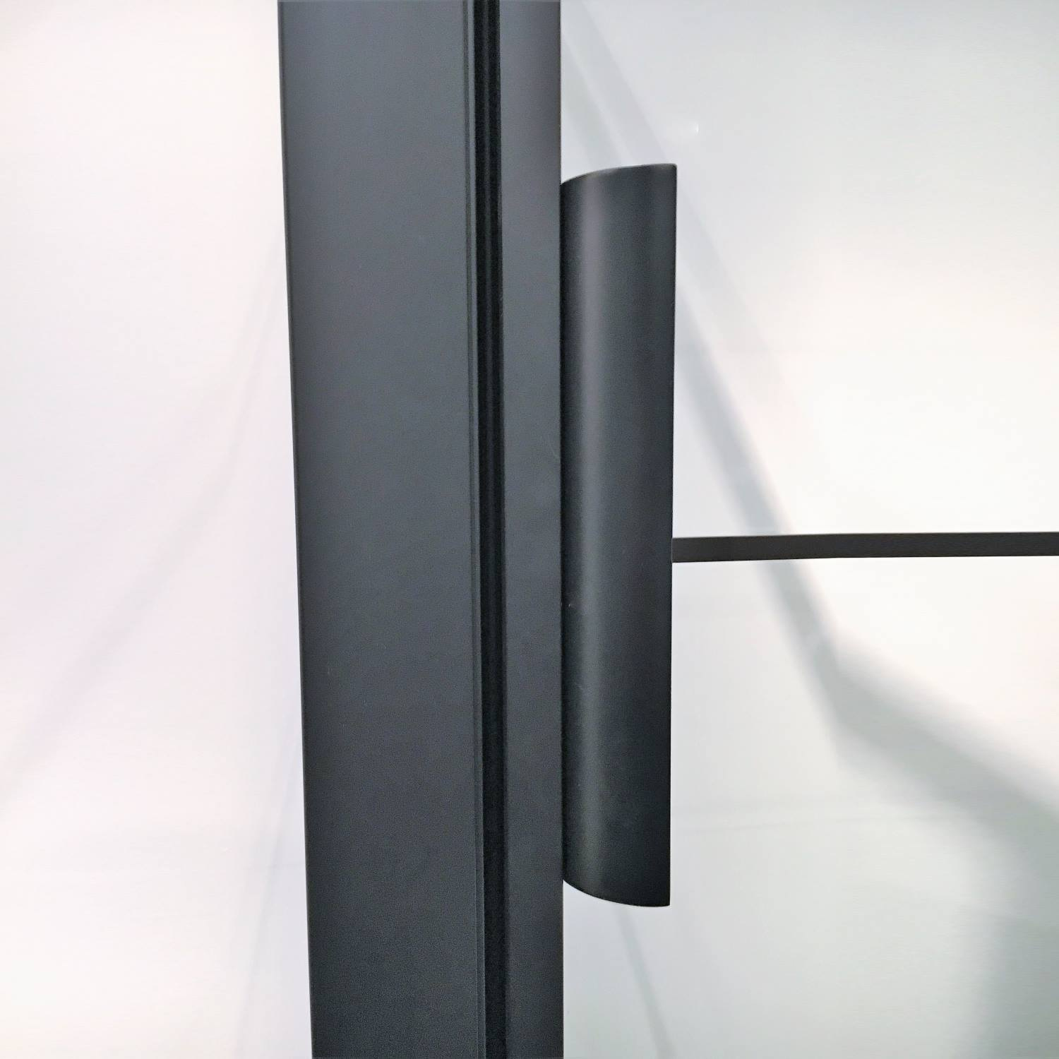 Deze prachtige nisdeur van het merk Boss & Wessing is minimalistisch afgewerkt. Het design is uniek en voorzien van een heldere glasplaat met zwarte profielen en lijnen die aan de buitenkant op het glas zitten. Het mat zwarte raster heeft een lange levensduur en is bovendien verkrijgbaar in verschillende afmetingen.