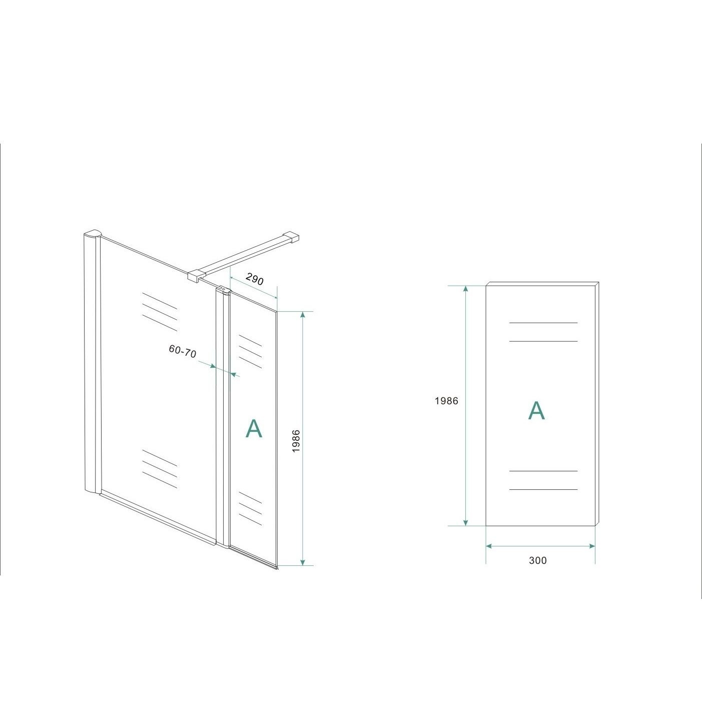 De zijwand is 35 cm breed, 200 cm hoog en is eenvoudig in en uit te klappen waardoor u gemakkelijk uw douchegedeelte kunt betreden. De zijwand is in en uit te klappen doordat de zijwand een scharnierend profiel bevat. De zijwand is perfect te combineren met inloopdouches met een glasdikte van 10 mm. Let op: De inloopdouche dient u apart te bestellen.