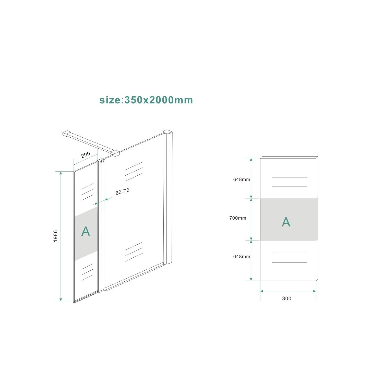 De zijwand is 35 cm breed, 200 cm hoog en is eenvoudig in en uit te klappen waardoor u gemakkelijk uw douchegedeelte kunt betreden. De zijwand is in en uit te klappen doordat de zijwand een scharnierend profiel bevat. De zijwand is perfect te combineren met inloopdouches met een glasdikte van 10 mm. De inloopdouche dient u apart te bestellen.