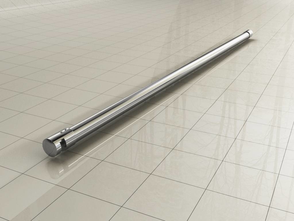 Chroom 3-delige stabilisatiestang, bestaande uit:, - glaskoppeling, - ronde stang van 120cm, - muurkoppeling, Kleur: chroom