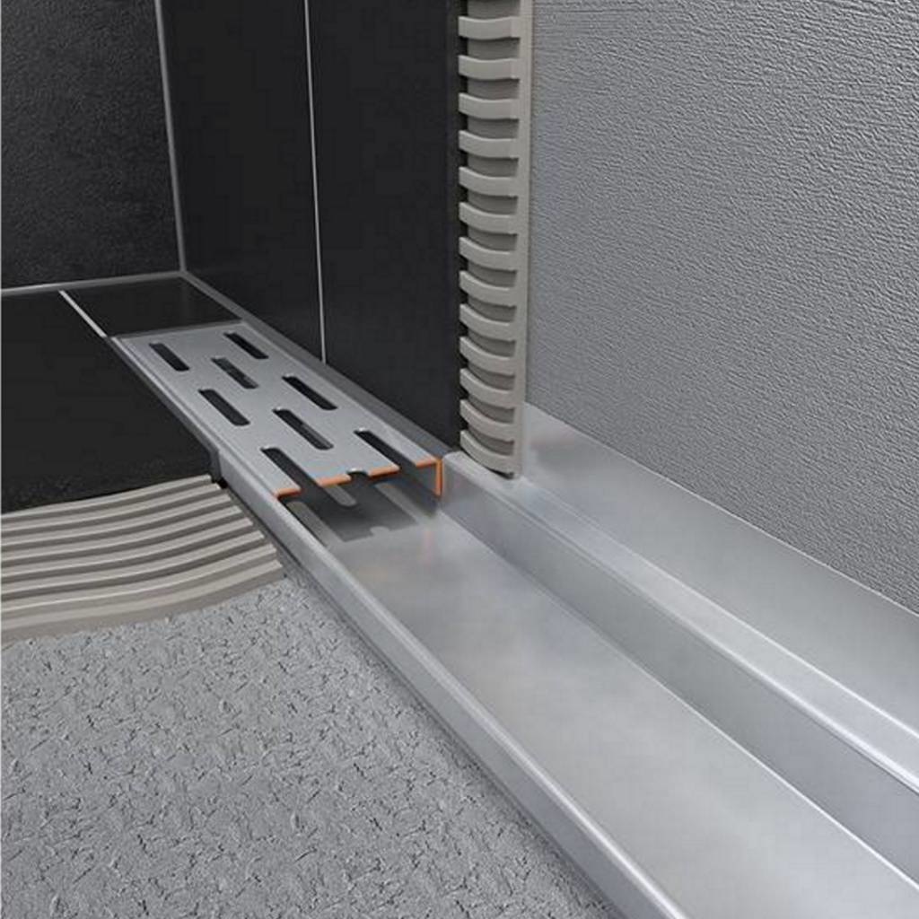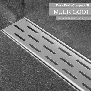 De standaard douchegoot Compact 30 is ook als muurgoot leverbaar. Met een waterslot van 30 mm en een inbouwdiepte van 63 mm is de Easy Drain Compact Wall een van de meest ondiepe goten ter wereld. De goot wordt geplaatst onder de wandtegel zodat u er zeker van bent dat water naar de goot komt en niet de muur of de vloer in zal trekken.