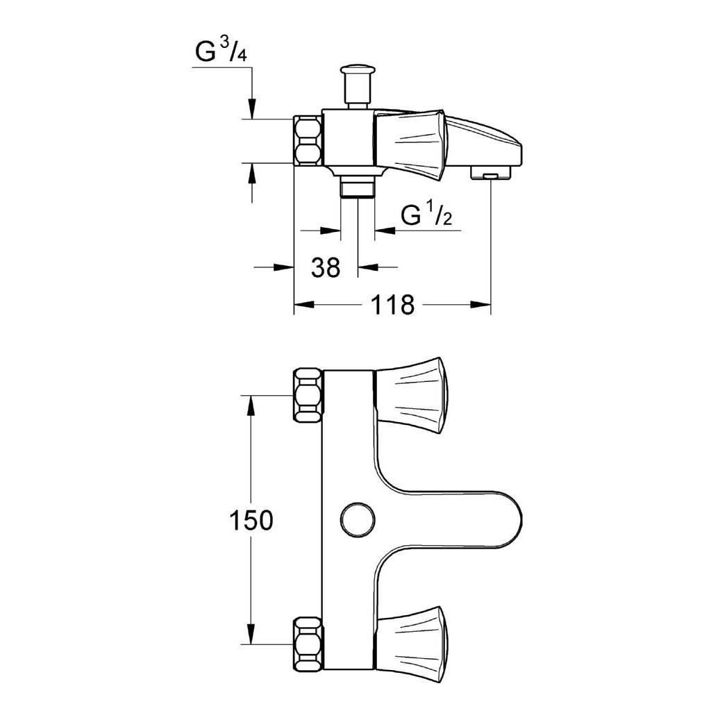 Verchroomde badkraan Costa L van Grohe. Deze badkraan is warmte geïsoleerd, heeft een automatische bad/douche omstelling. Voorzien van een gegoten uitloop met mousseur en 1/2 inch doucheslang aansluiting, zonder koppelingen.