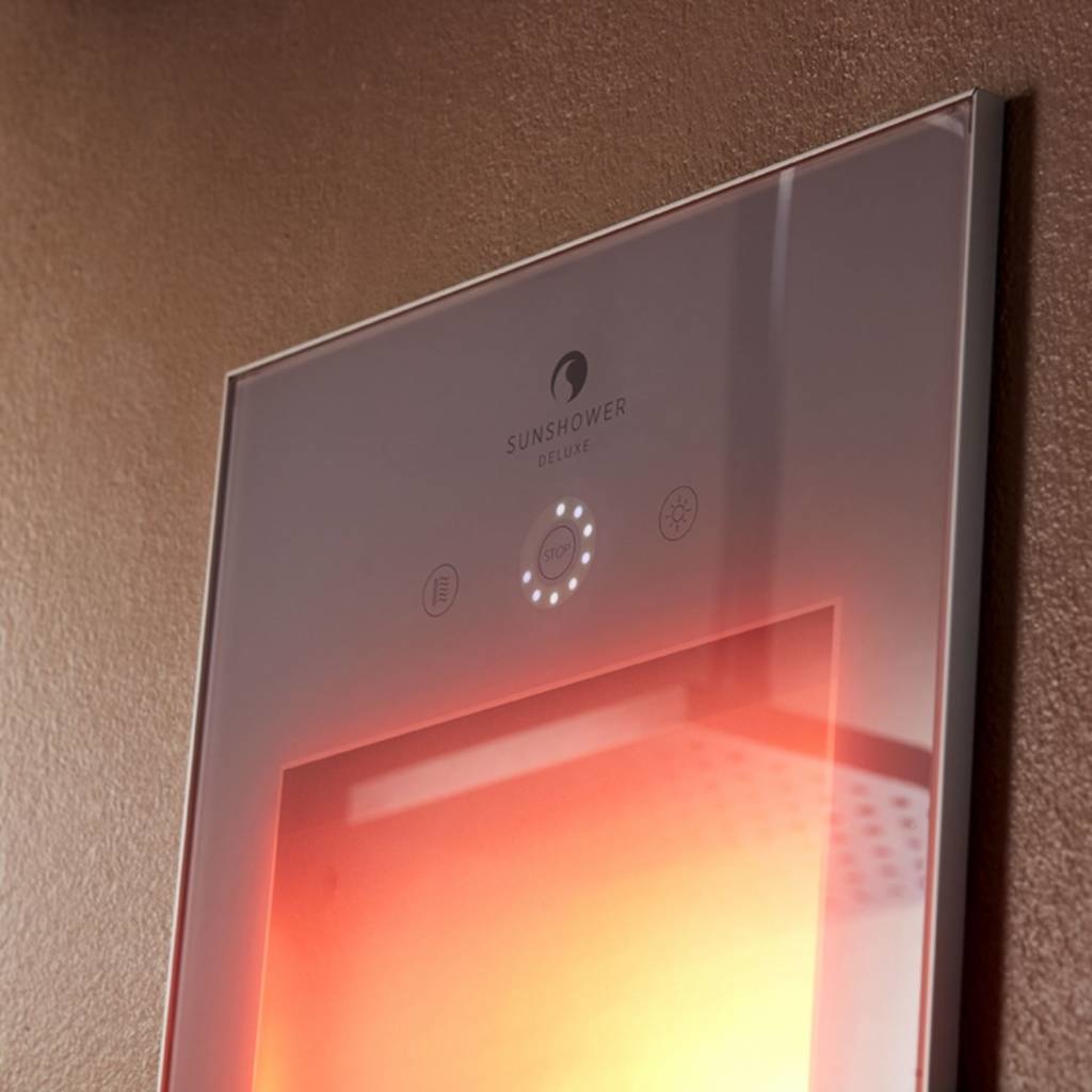 Net zoals de andere Sunshower modellen beschikt de Deluxe White over een infrarood lichtfunctie. Deze variant beschikt over vijf infraroodlampen. De infraroodlampen staan stralen af die diep tot in uw lichaam doordringen, hierdoor stijgt u lichaamstemperatuur tijdens het gebruik van de Deluxe White. Door middel van deze warmte die u zult absorberen zal u afweersysteem gestimuleerd worden. Met de infraroodfunctie heeft u dus een verlaagde kans op verkoudheid.