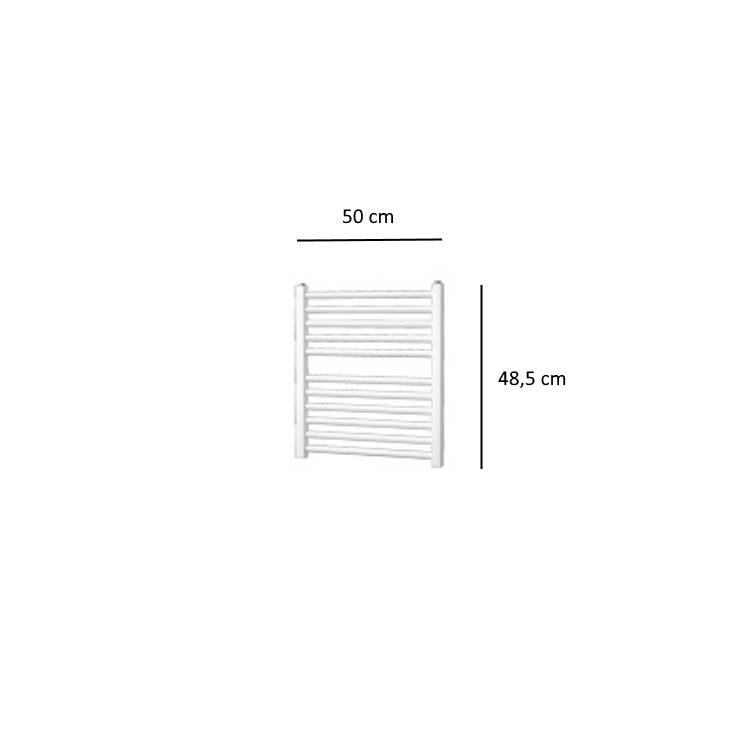 Deze designradiator van de Serie Quadro kan door zijn eenvoudige design geplaatst worden in iedere gewenste ruimte. Met het ingetogen ontwerp is de handdoekradiator elegant en stijlvol. Deze designradiator heeft vier aansluitpunten en kan in combinatie met een elektrisch verwarmingselement gebruikt worden als elektrische verwarming. De breedte van deze radiator is 50 cm, de hoogte 48,5 cm en het vermogen bedraagt 204 Watt.