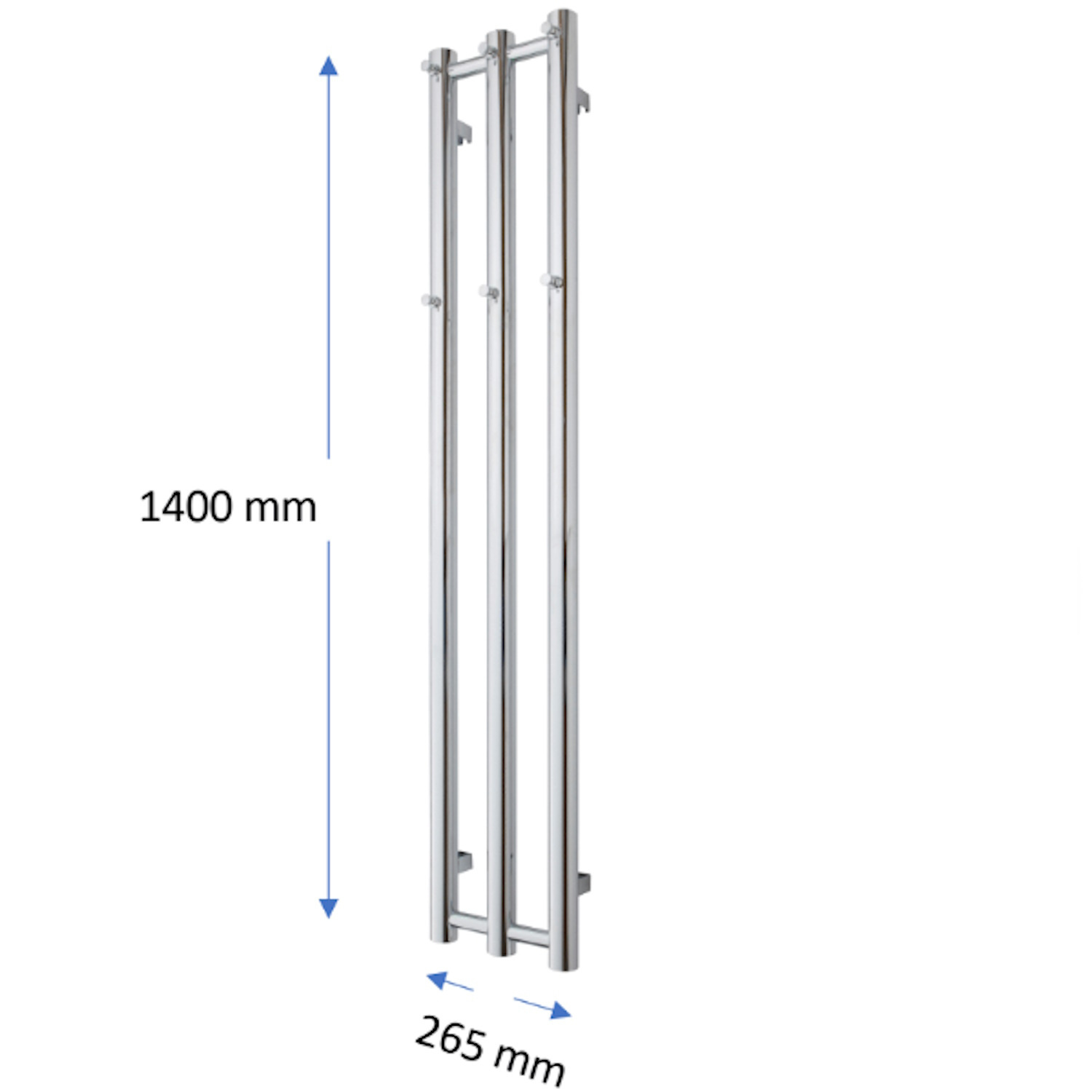Bent u op zoek naar een designradiator met luxe uitstraling voor in uw badkamer? Dan is deze radiator van TVS uit de serie Kiro 3 iets voor u. Deze witte radiator is 140 cm hoog en 26.5 cm breed. Hij bestaat uit 3 verticale buizen die een D-vorm hebben en 2 horizontale buizen die een ronde vorm hebben. Op de verticale buizen zitten 6 haakjes verdeeld over 2 rijen waar uw handdoek opgehangen kan worden. Deze radiator heeft 4 stalen bevestigingspunten aan de achterkant zitten waardoor u hem aan de muur kunt bevestigen. De radiator moet worden aangesloten op de centrale verwarming en hij heeft een capaciteit van 200 Watt. Door deze radiator te plaatsen, krijgt u badkamer een moderne look met de luxe van een warme handdoek na het douchen. Zo komen design en comfort samen!