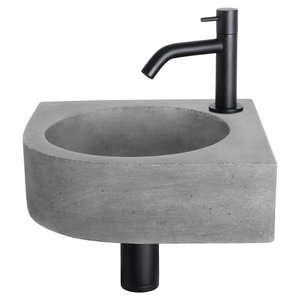 Fonteinset Differnz Cleo 31.5x31.5x10 cm Beton Donker Grijs Met Kraan Gebogen Mat Zwart