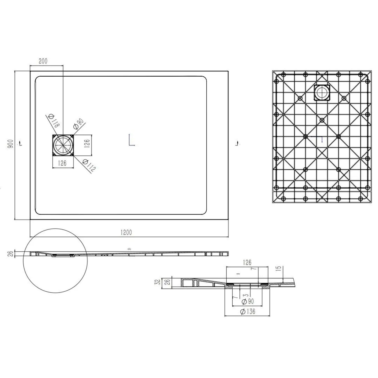 Let op, deze douchebak kan niet gemonteerd worden op poten. De bak wordt rechtstreeks op de vloer gemonteerd. Wij raden aan de bak te plaatsen op een vlakke vloer. De sifon moet een stukje in de vloer gemonteerd.