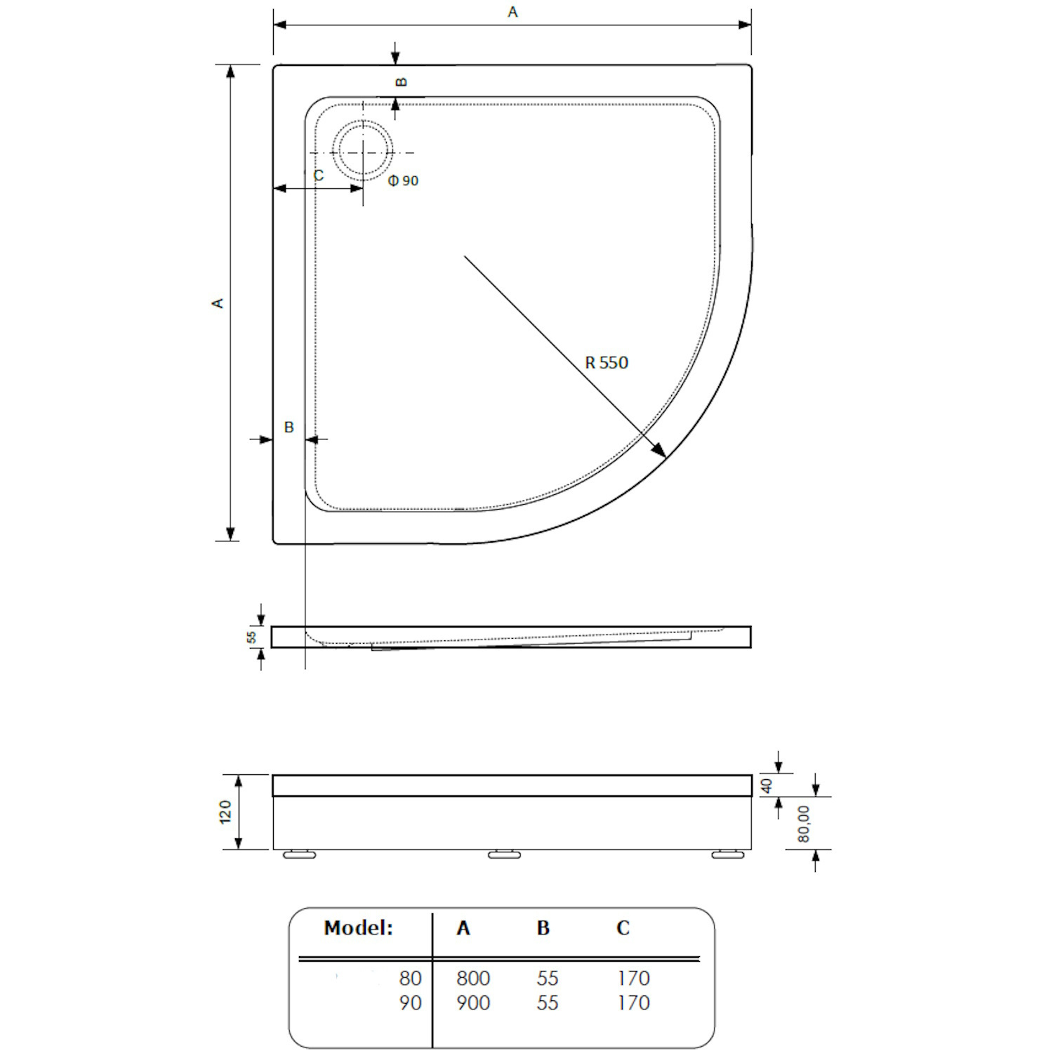 Moderne douchebak van het merk Boss & Wessing uit de serie Ailah heeft een kwartronde vorm en is gemaakt van acryl. De rand van de douchebak is mooi afgewerkt met een plint, deze is inclusief. De douchebak heeft een afmeting van 80 cm bij 80 cm en een hoogte van 12 cm.