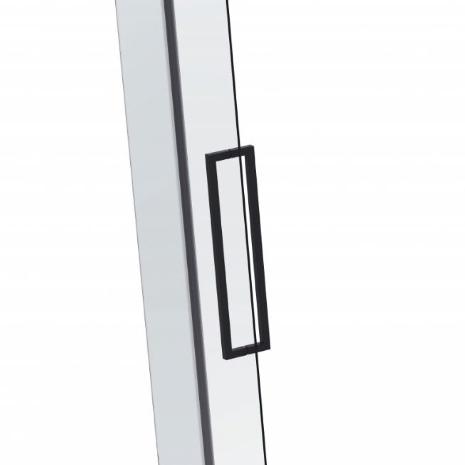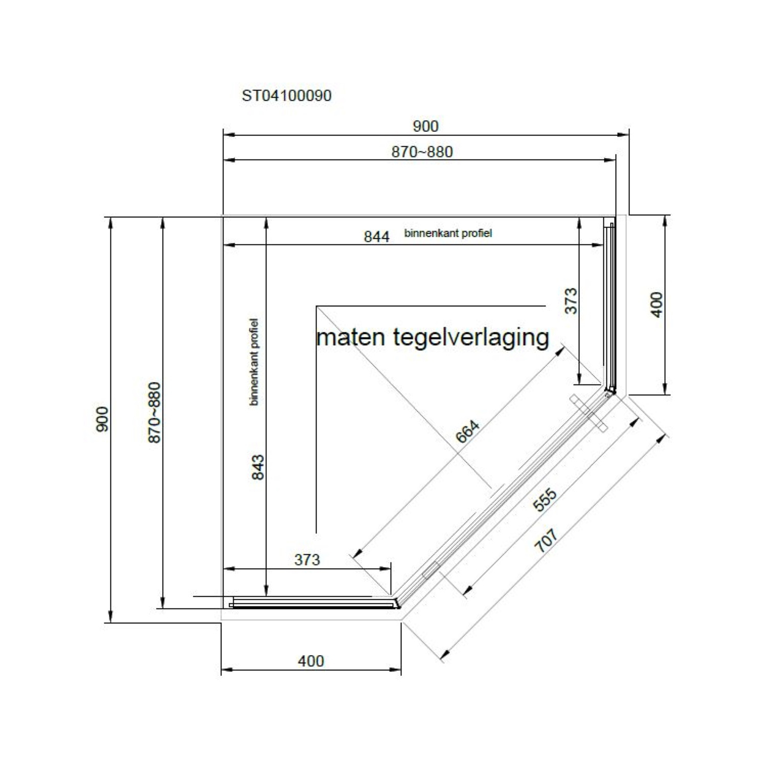 De douchecabine van Van Rijn zorgt met zijn vijfhoekige vorm en zwart aluminium frame voor een moderne uitstraling. De douchecabine is uitgerust met 6 mm dik veiligheidsglas dat is behandeld met nano antikalk coating. De coating zorgt ervoor dat vuil en vet resten zich niet makkelijk kunnen hechten aan het glas, waardoor de cabine er zo lang mogelijk uit blijft zien als nieuw. De deur van de douchecabine is zowel links als rechts te plaatsen en is eenvoudig te bedienen dankzij de metalen grepen aan beide kanten. De afmeting van de douchecabine is 90x90x200 cm en de afmeting van de deur is 70,7x200 cm waarvan de deuropening 55 cm is. De twee horizontale lijnen in het midden van de nisdeur zijn zeefdruk (geprint), en dus niet van aluminium. Neem gerust een kijkje op de technische tekening voor meer informatie.
