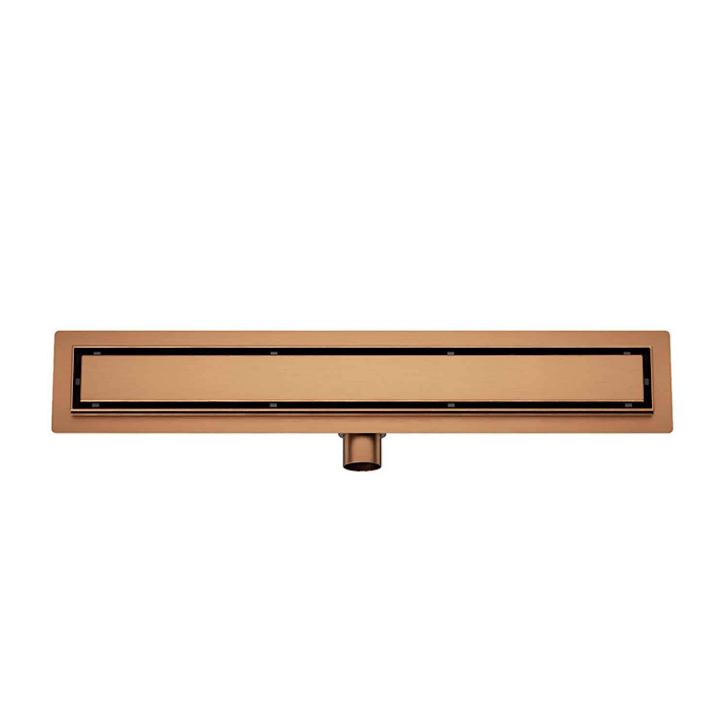 Bent u op zoek naar een douchegoot met tegelrooster voor in uw badkamer? Dan is deze douchegoot van Wiesbaden uit de serie Suus echt iets voor u. Deze goot heeft een flens, zodat u de tegel strak tegen de goot kunt leggen. Hij heeft de kleur geborsteld brons koper en hij heeft een rooster die op twee manieren gebruikt kan worden. Het rooster kan gebruikt worden als rooster, maar als u hem omdraait kan hij ook gebruikt worden als rooster waarin een tegel gelegd kan worden. Hierdoor valt de goot bijna weg in uw tegels wat een strakke look geeft. De afmetingen van de goot zijn 90 cm lang, 7 cm breed en maximaal 9.5 cm diep. Er zitten 2 stelpoten onder de douchegoot. Deze goot heeft een uitneembare haarfilter. Door zijn strakke design en kleur past deze douchegoot in elke moderne badkamer.