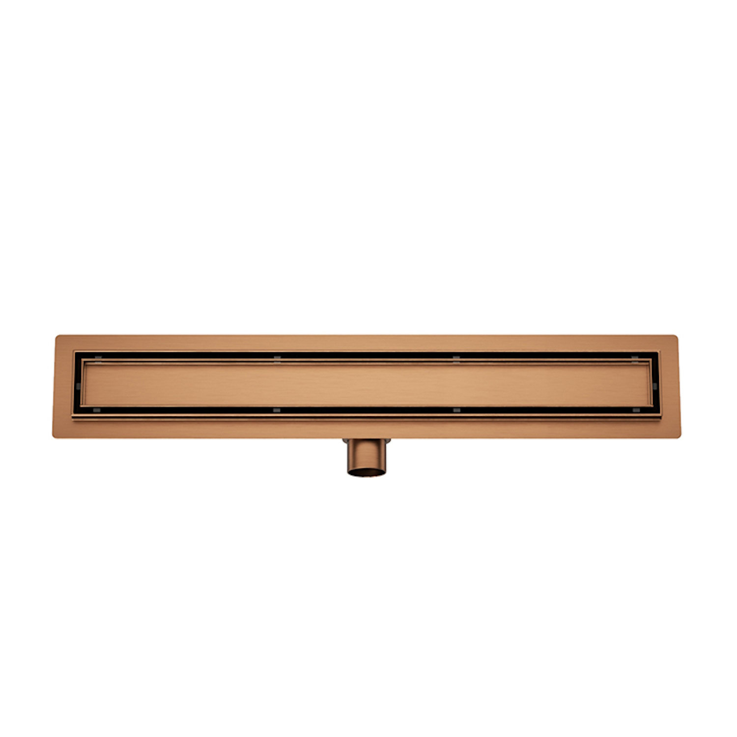 Bent u op zoek naar een douchegoot met tegelrooster voor in uw badkamer? Dan is deze douchegoot van Wiesbaden uit de serie Suus echt iets voor u. Deze goot heeft een flens, zodat u de tegel strak tegen de goot kunt leggen. Hij heeft de kleur geborsteld brons koper en hij heeft een rooster die op twee manieren gebruikt kan worden. Het rooster kan gebruikt worden als rooster, maar als u hem omdraait kan hij ook gebruikt worden als rooster waarin een tegel gelegd kan worden. Hierdoor valt de goot bijna weg in uw tegels wat een strakke look geeft. De afmetingen van de goot zijn 80 cm lang, 7 cm breed en maximaal 9.5 cm diep. Er zitten 2 stelpoten onder de douchegoot. Deze goot heeft een uitneembare haarfilter. Door zijn strakke design en kleur past deze douchegoot in elke moderne badkamer.