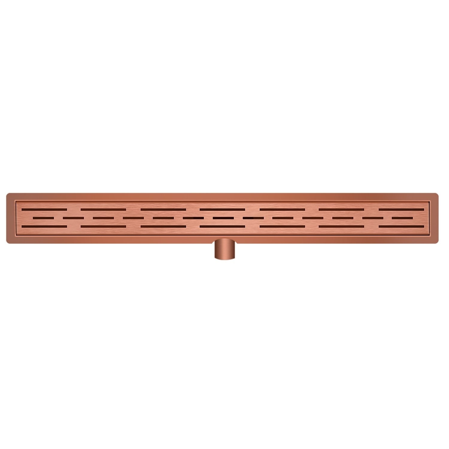 De douchegoot is voorzien van een geborsteld koper rooster. De douchegoot heeft een koperkleurige uitvoering en maakt het verschil in uw badkamer. Het rooster valt op in uw douchecabine en in combinatie met andere koperkleurige details maakt u het plaatje af. Het rooster is 70 centimeter lang en slechts 7 centimeter breed. Ook verkrijgbaar in 80, 90 en 100cm.