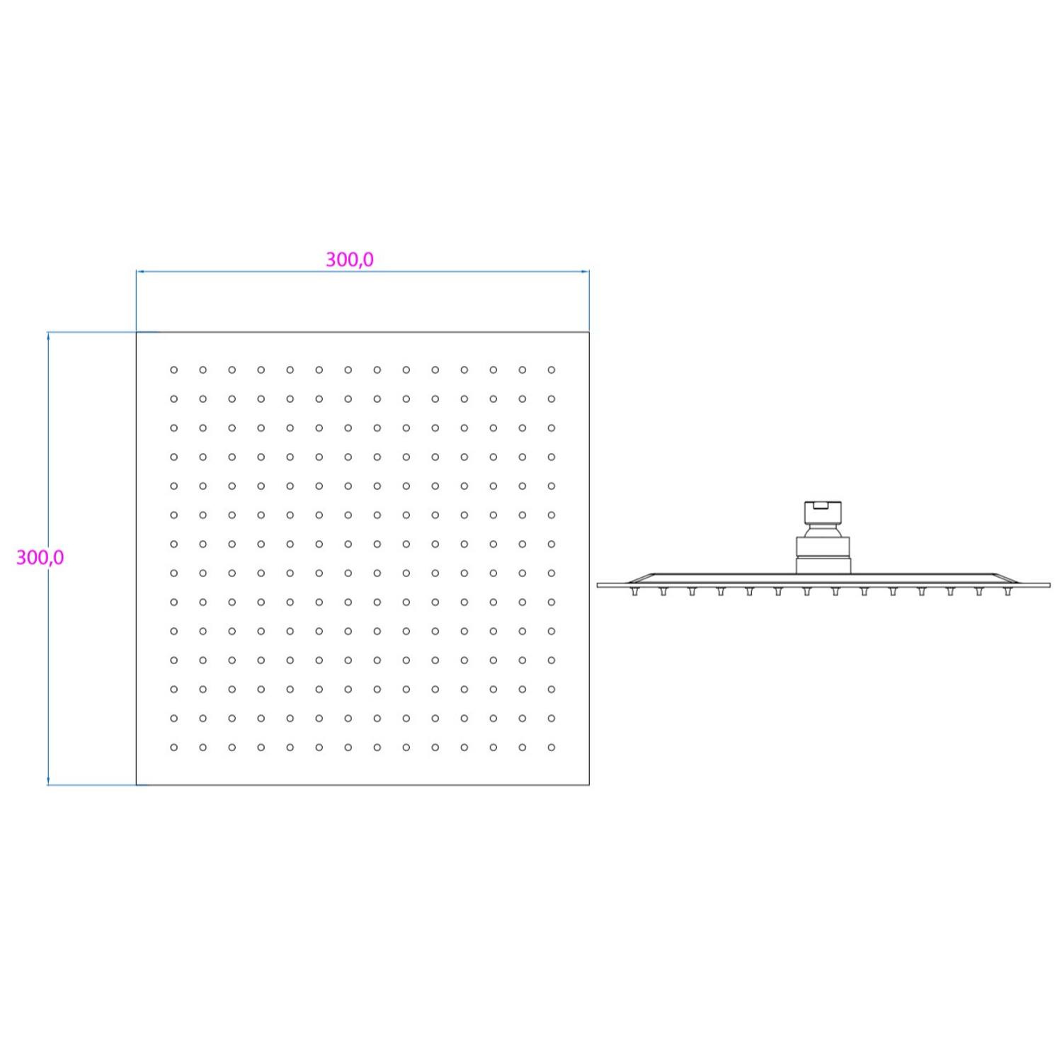 De Sumba douchekop van het merk Schutte is gemaakt van roestvrij staal en heeft een chromen afwerking. De douchekop is vierkant en heeft als afmetingen 30 x 30 cm en diepte van 5.6 cm. De Sumba douchekop bevat ook antikalk sproeigaatjes. Dit maakt het schoonmaken van de doucheknop een stuk gemakkelijker. De douchekop is voorzien van een 1/2 aansluiting.