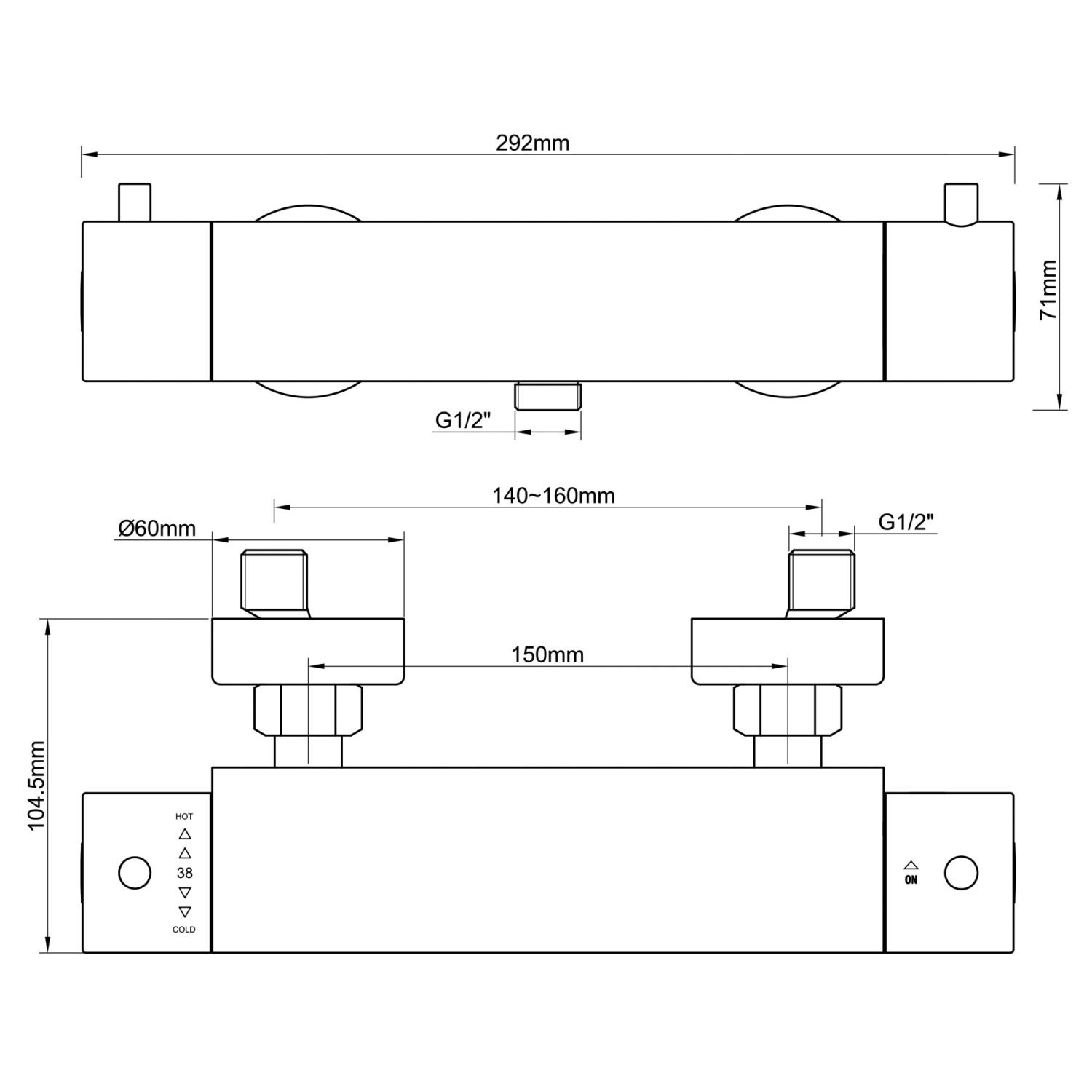Als u opzoek bent naar een mooie en veilige douchekraan, is deze kraan zeker geschikt. U bedient deze douchethermostaat met de twee draaiknoppen. Met de ene knop draait u de kraan open en dicht en met de andere knop bepaalt u de gewenste temperatuur. Hij heeft een lengte van 29,2 cm en een diepte van 10,45 cm.