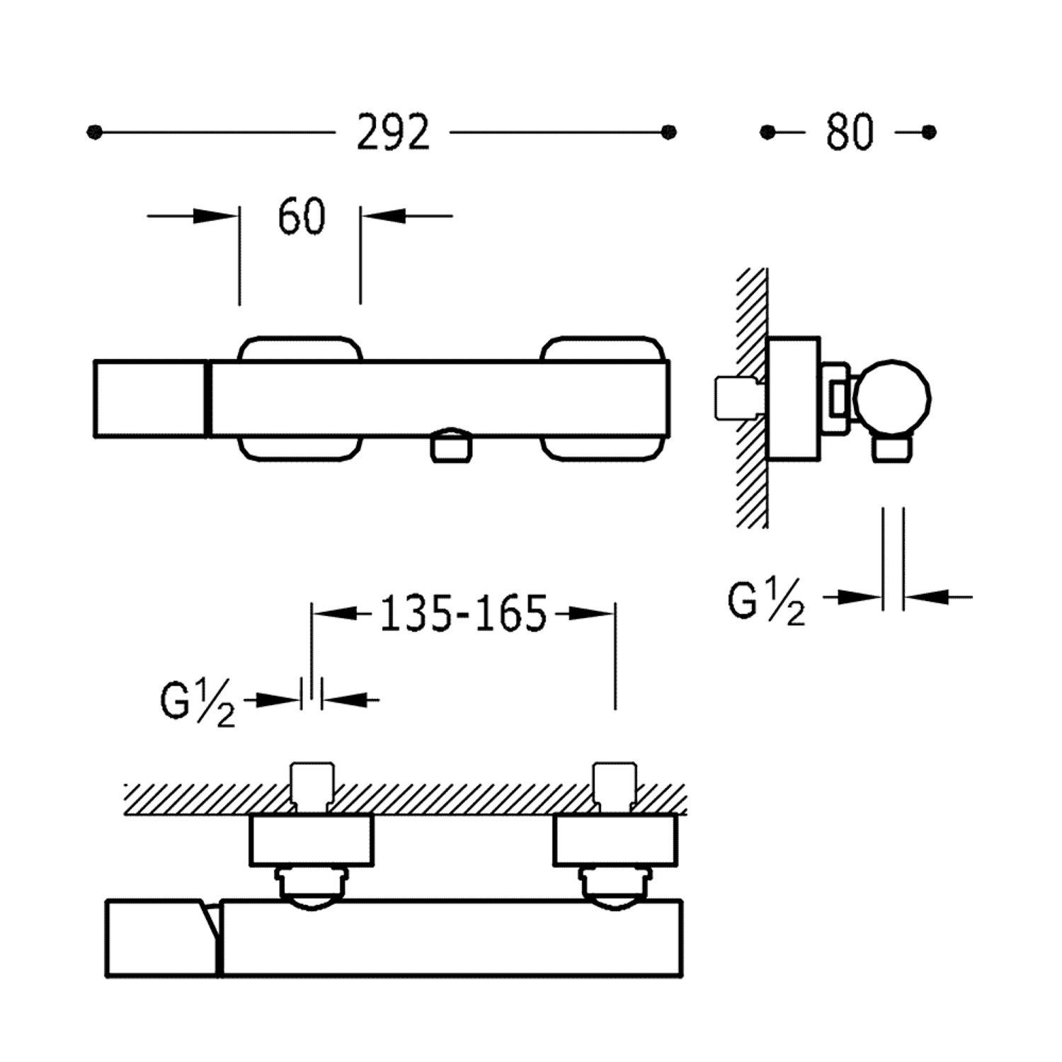 De kraan is 29,2 cm lang, 8 cm diep en heeft rozetten van 6x6 cm. De hart-op-hart afstand is variabel van 13,5 tot 16,5 cm. De kraan heeft aansluitingen van 1/2". De kraan is van messing in de kleur mat wit.