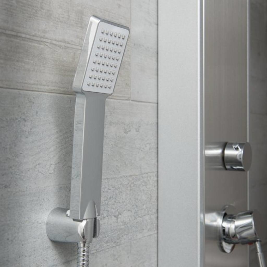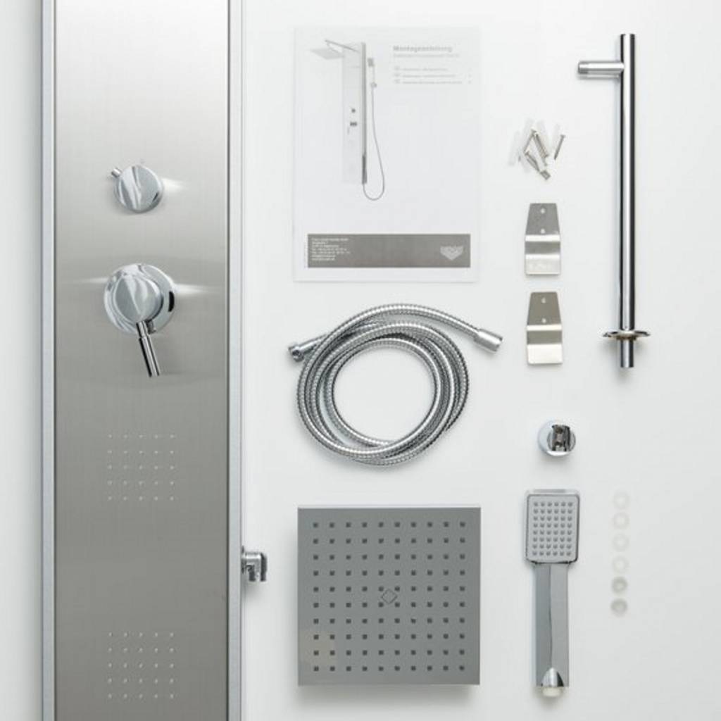 Dit douchepaneel onderscheidt zichzelf vooral door de twee aanwezige massagesproeiers die zich op het product bevinden: deze kunnen handmatig aan worden gezet en tillen uw douchecomfort naar een nog hoger niveau! Het douchepaneel is aan de zijkanten afgedekt zodat het een mooi geheel vormt. Bovendien wordt het douchepaneel geleverd met bevestigingsen aansluitmateriaal en aansluitslangen, zodat het artikel eenvoudig te monteren is.