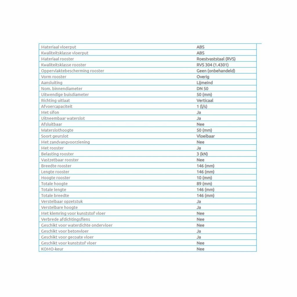 - 2 mm. roestvaststalen aisi 304 rooster (hoogglans) met 8 mm. sleufgaten en verstevigde rand, naar beneden omgezet, max. belasting 3 kN (klasse 3)