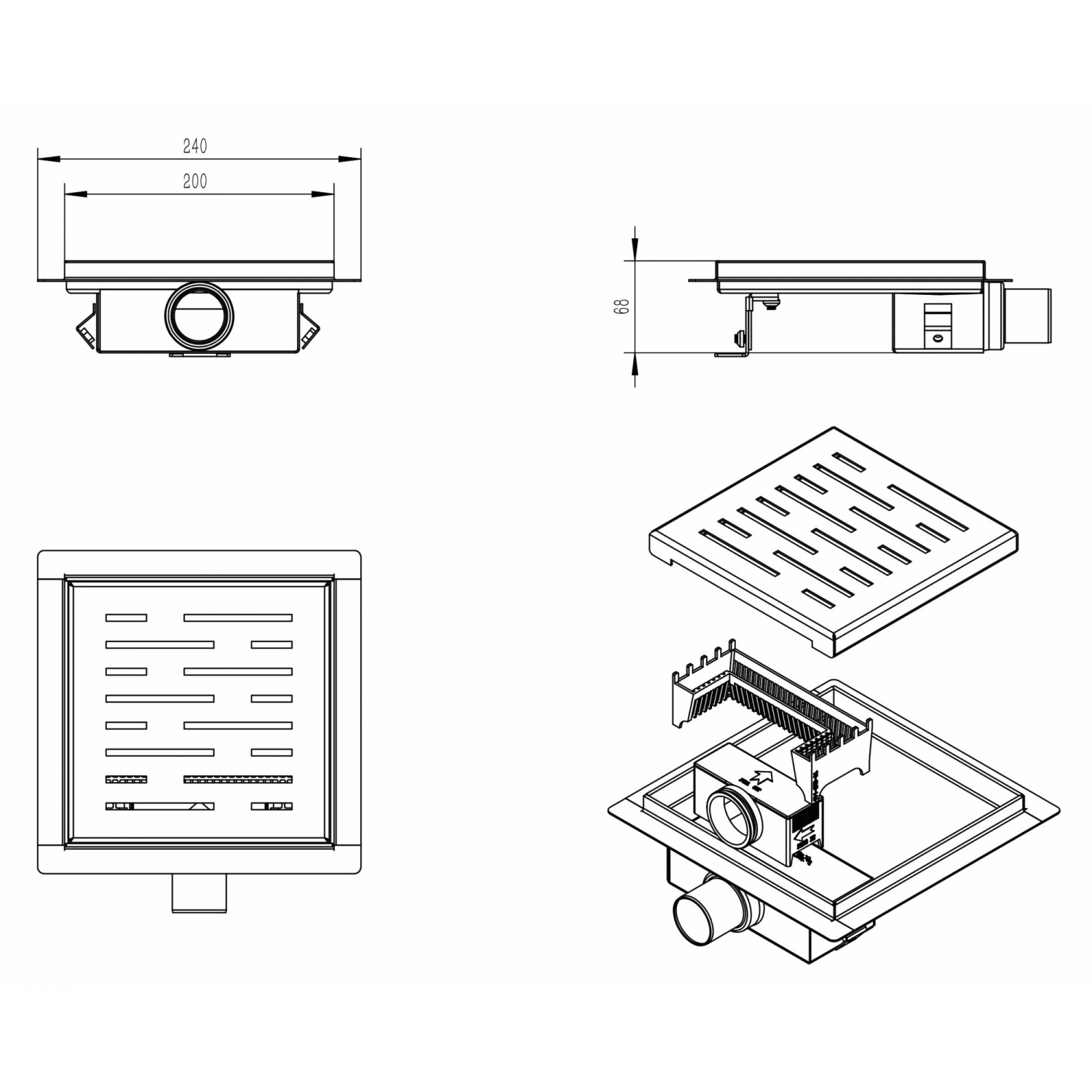 Maak uw douche compleet met deze doucheput van Boss & Wessing. Het voordeel aan een doucheput is dat deze weinig plaats inneemt. Minder dan bijvoorbeeld een douchegoot. Deze doucheput is slechts 24x24 cm (inclusief de flens). Met de flens werkt u bijvoorbeeld randen van een tegel weg. De flens sluit dan naadloos aan op de vloer.