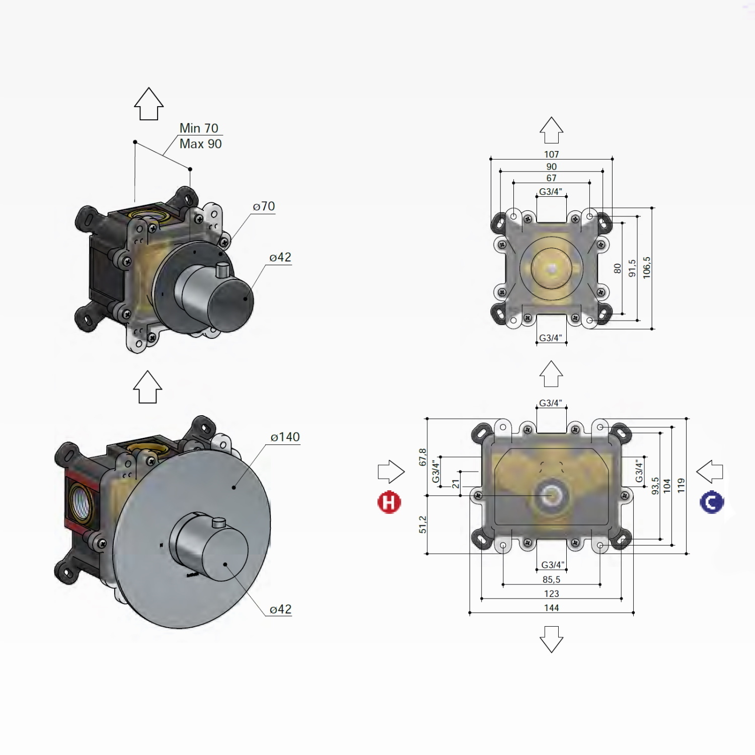 Op zoek naar een design inbouw douchekraan? Kies dan voor deze beauty! Een chromen thermostatische douchekraan is de eyecatcher van uw badkamer! In combinatie met andere chromen elementen creëert u een badkamer rijk aan design! De douchethermostaat heeft een 3/4" doucheaansluiting met 1 stopkraan en is te combineren met alle andere onderdelen van de Hotbath Buddy serie. Zo zijn er douchekranen, badkranen, wastafelkranen en zelfs de bidetkranen mogelijk. Doordat de kraan is voorzien van een unieke kruisgreep, kunt u de douchekraan comfortabel en nauwkeurig bedienen.