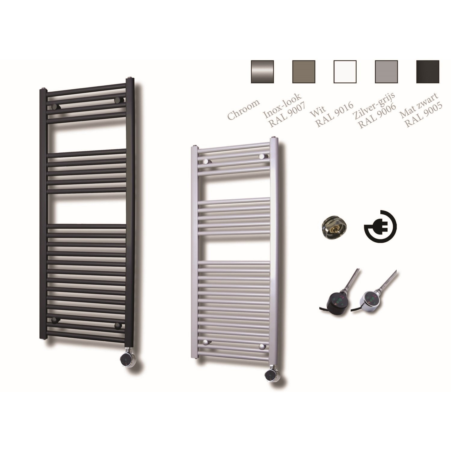De radiator wordt geleverd inclusief ophanging, automatische ontluchter, 4 montage beugels en thermostaat. (de locatie van de thermostaat is rechtsonder, op aanvraag ook linksonder leverbaar). De afmeting van de radiator is 111,8 cm hoog, 45 cm breed en hij wordt geleverd in de kleur wit met thermostaat zwart.