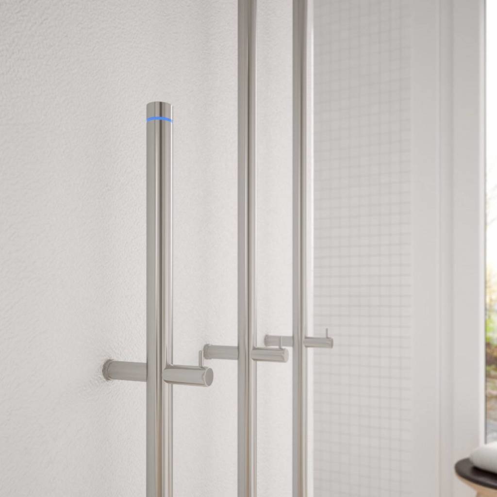 Simpel, elegant en functioneel. De handoekdroger is gemaakt van geborsteld of gepolijst roestvast staal en is vanaf heden ook leverbaar in zwart.
