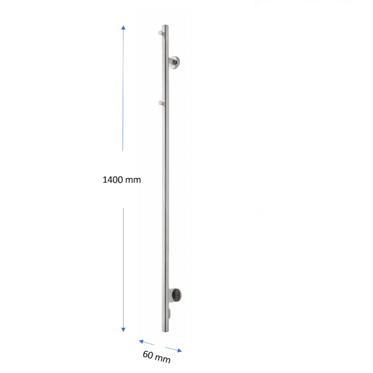 Bent u op zoek naar een elektrische radiator voor in uw badkamer? Dan is deze radiator van TVS uit de serie Eldo 1 helemaal iets voor u. Deze Mat zwarte, ronde radiator is 140 cm hoog en 6 cm breed. Aan de achterkant van deze radiator zitten 2 bevestigingspunten, waardoor u hem aan de muur kunt hangen. Er zitten 2 haakjes aan de radiator waar u uw handdoek op kunt hangen. Deze radiator heeft een ingebouwde thermostaat dat de temperatuur tussen de 45 en 55 graden houdt. Ook zit er een timer functie op waarbij u kunt kiezen wanneer de radiator uitschakelt, dit kan na 2 of 4 uur zijn. Hierdoor kunt u hem ook niet vergeten uit te zetten. Door zijn strakke design past hij in elke badkamer en heeft u altijd een warme handdoek na het douchen.