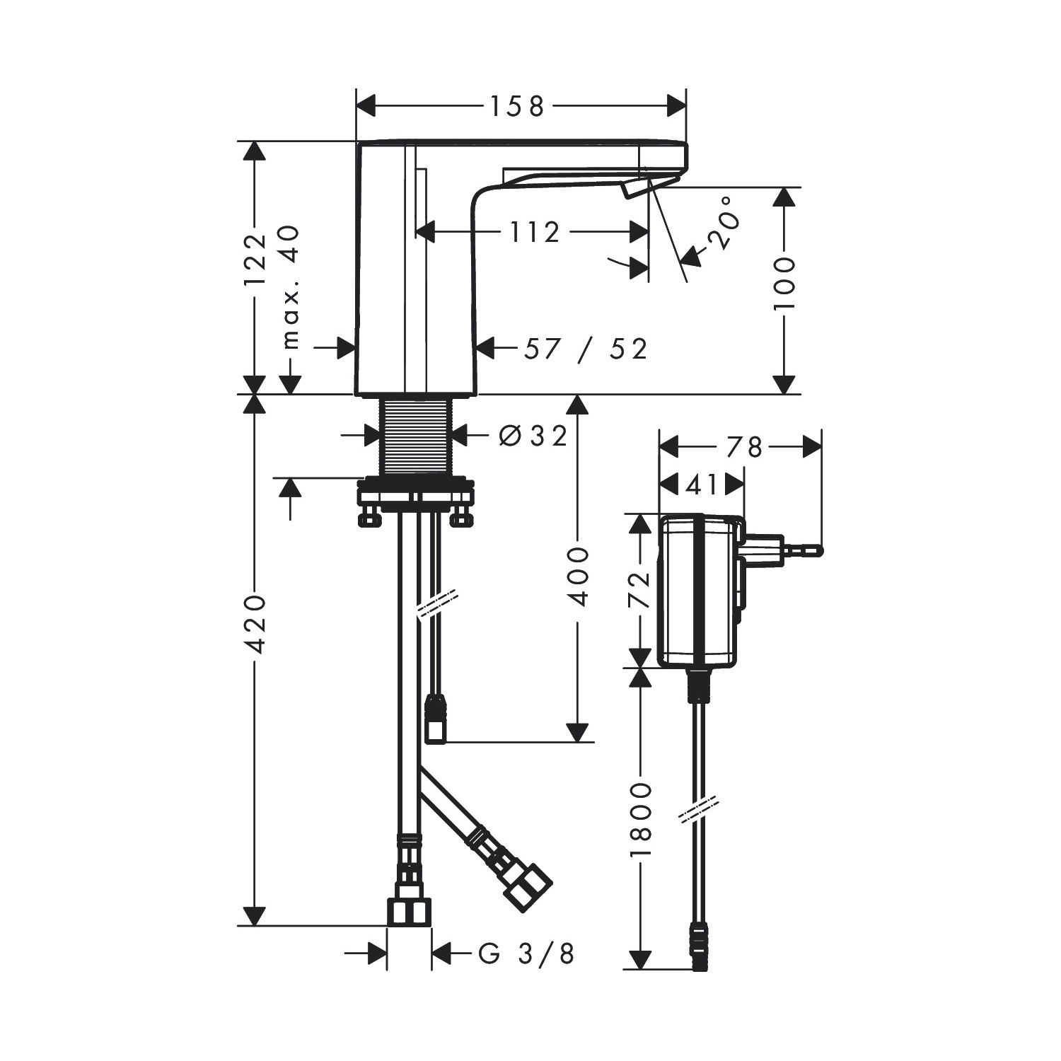 Deze moderne wastafelkraan komt uit de Vernis Blend collectie van HansGrohe. De kraan heeft een elektronische bediening door middel van Sensor Activation. De sensor op deze contactloze mengkraan reageert, net als veel bewegingsmelders, op veranderde infraroodstraling. Zodra de sensor de warmte van uw handen detecteert zal het water stromen. Dit maakt de kraan zuinig in verbruik en hygiënisch. Hoelang de kraan spoelt kunt u zelf instellen voor 10, 20 of 30 seconden. De kraan geeft een normale straal en bevat een verstelbare perlator. De kraan is voor koud water of geconcditioneerd water. Daarnaast bevat de kraan een waterstop, zodat u uw wastafel kunt reinigen zonder dat de sensor afgaat.
