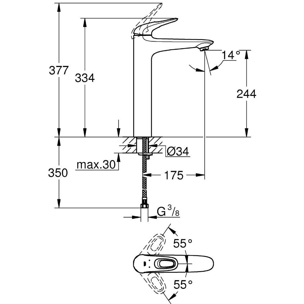 Grohe Eurostyle New 1 gats wastafelkraan XL size met gladde body chroom