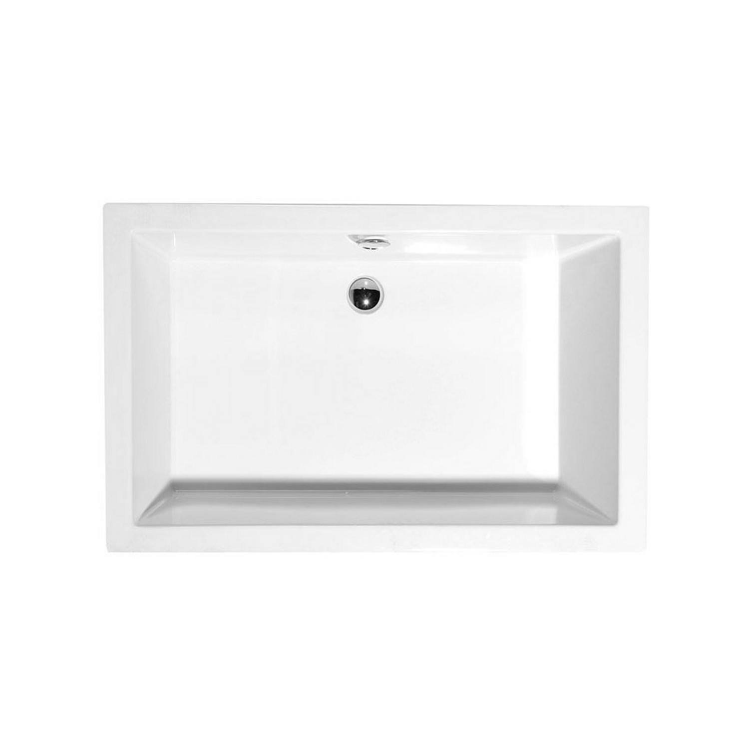 De rechthoekige douchebak is voorzien van een afvoergat met een diameter van 52 mm in het midden van de douchebak. Er wordt geen afvoer meegeleverd en ook de universele potenset zult u moeten bestellen. De voeten zijn niet inbegrepen in het pakket