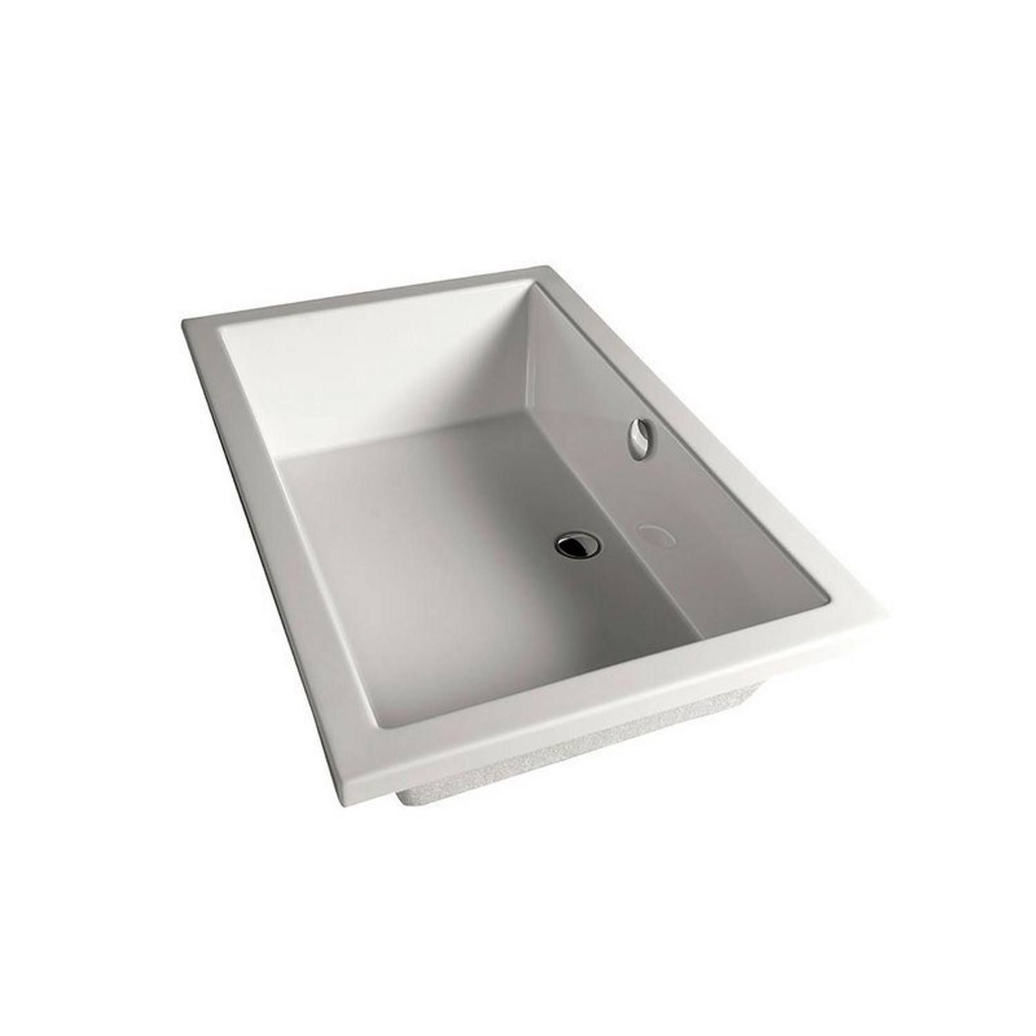 De rechthoekige douchebak is voorzien van een afvoergat met een diameter van 52 mm in het midden van de douchebak. Er wordt geen afvoer meegeleverd en ook de universele potenset zult u moeten bestellen. De voeten zijn niet inbegrepen in het pakket